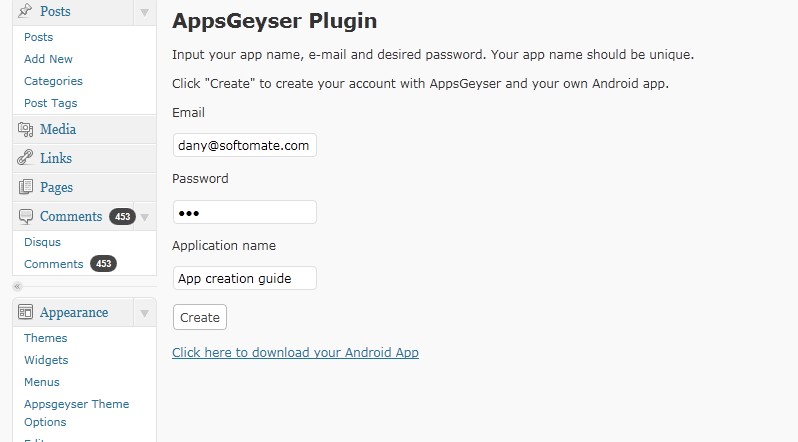 - You need to install Appsgeyser plugin.