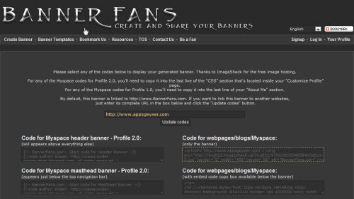 - Get the code (labeled for webpages/blogs/MySpace) – be sure to change the link address!