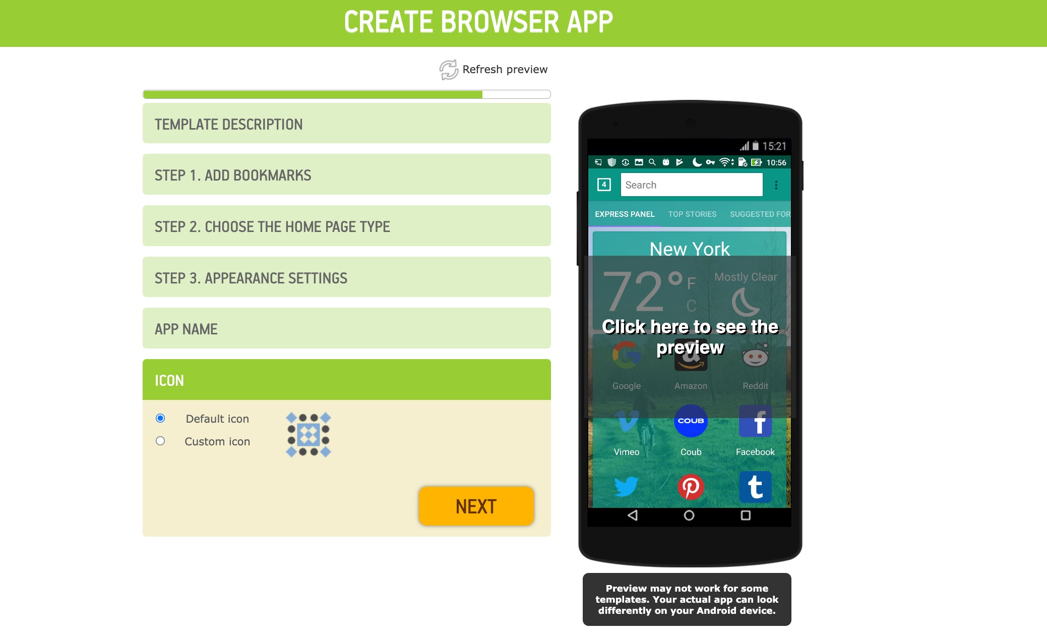 After you have given your browser a unique name, you will be taken to the section where you can choose your browser icon. You can either choose to keep the default app icon, or you can upload a custom browser icon. It is all your choice!