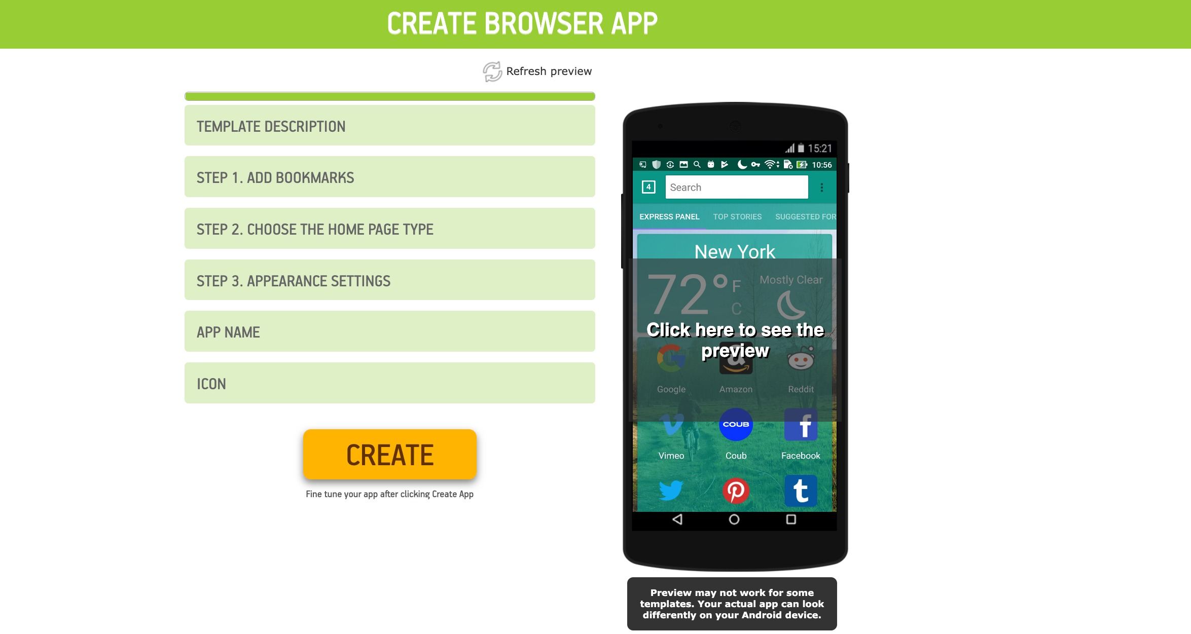 With the Browser App Builder, you can create a browser like Google Chrome within 10 minutes. Choose one of the free app templates to create your own browser!
