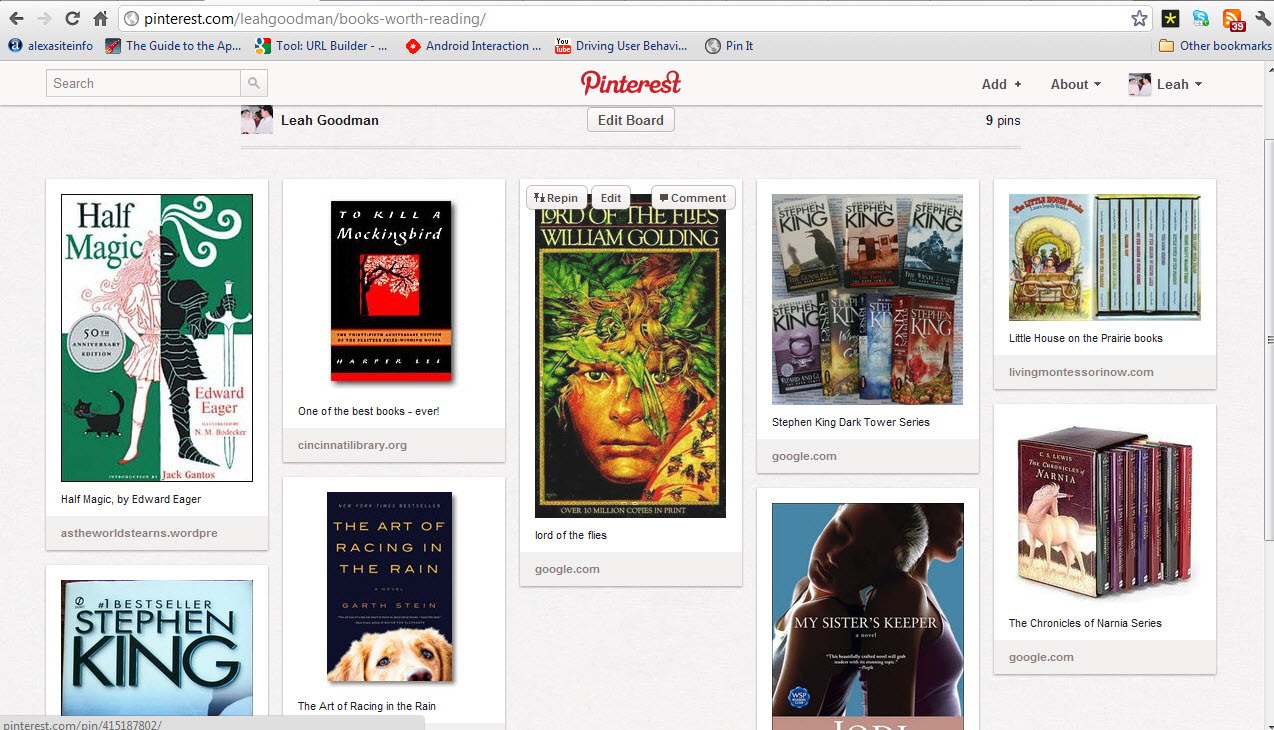 Pinterest is also an easy way to create a virtual bookshelf, filled with your reading recommendations.