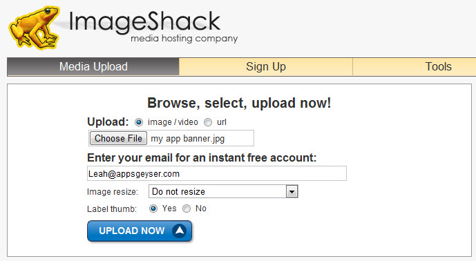 - Upload it to ImageShack. Be sure to select “Do not resize!”